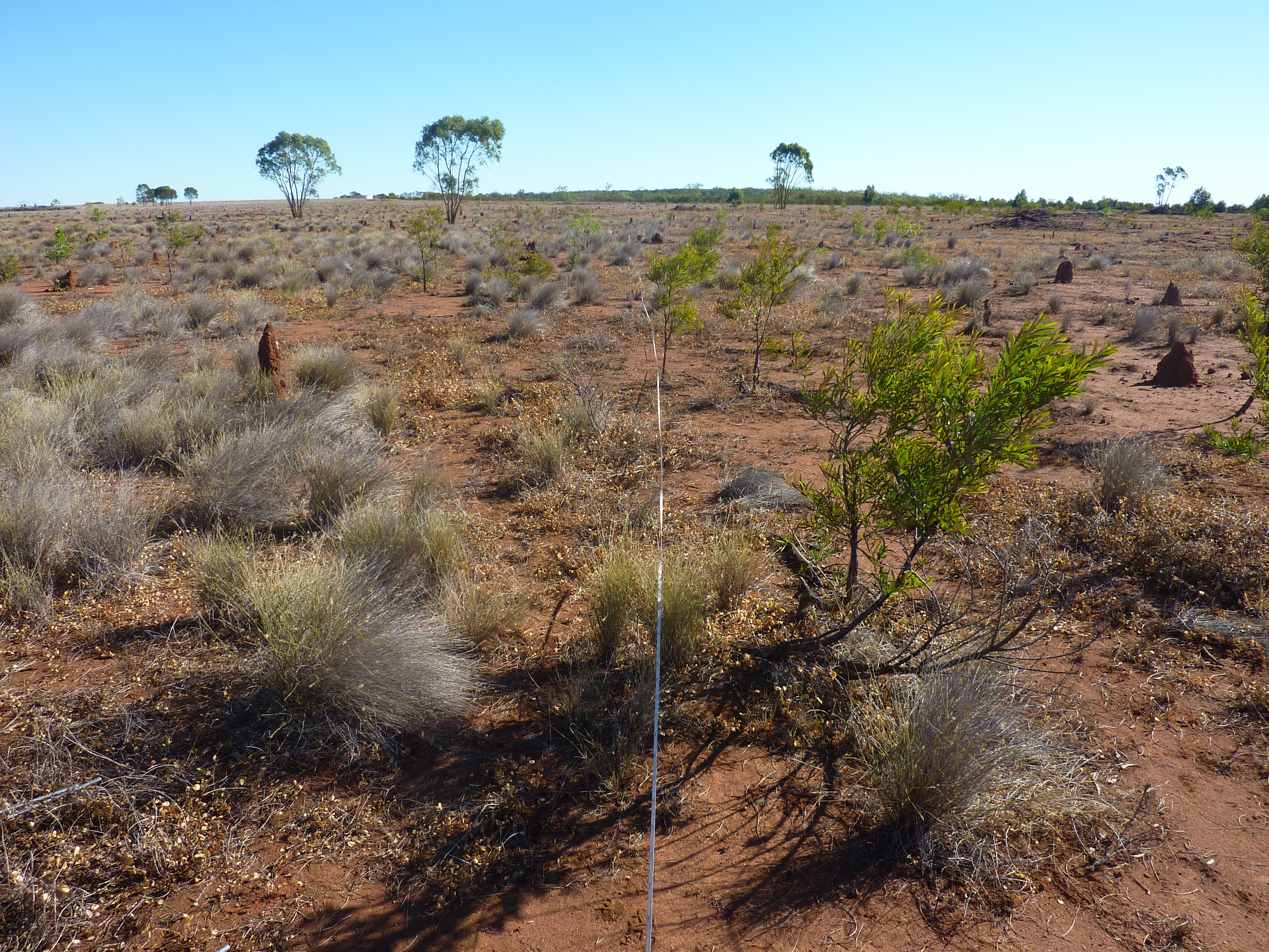 A team of 5 CSIRO researchers visited the Spyglass site in May 2015. This short trip was an excellent opportunity to investigate the research station, and to test a few of the field methods we intend to use at other sites, though the drought conditions that have prevailed for the last four years meant that the grass biomass and range of biomass levels was probably less than ideal for model development.
